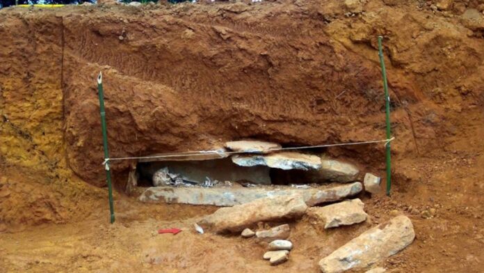El primer descubrimiento se trató de una fosa de piedra con un esqueleto. Este tipo de entierro corresponde a una tumba de cancel, una práctica funeraria de sociedades pasadas, considerada única en el departamento de Antioquia y poco común en la región.
